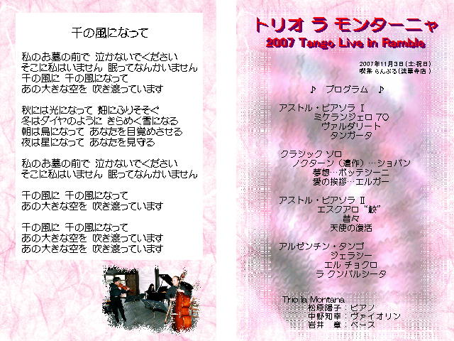 ピアソラ・ライブ 2007 in らんぶる プログラム